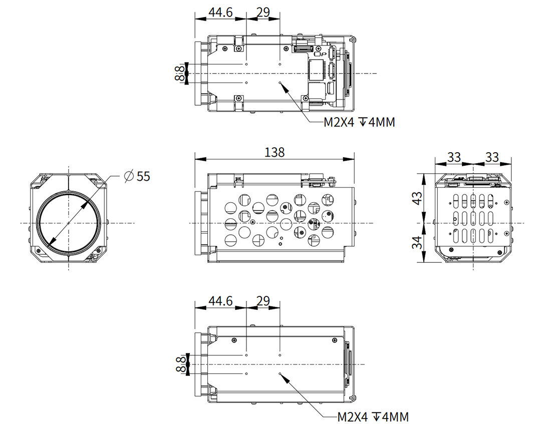 4Pin Ethernet -port, 6Pin Serial & Power Port, 5Pin Audio Port. 30pin mipi |